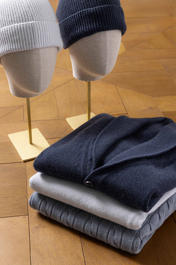Fresh Colours in Cashmere: From steel blue to terracotta, our expanded palette allows you to personalise your knitwear in tones that reflect the season.