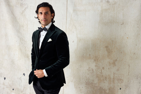 目立ちたいけれど、オフホワイトのベルベットはちょっと悪役っぽすぎると感じていませんか?バーガンディ、グリーン、ブラック、ミッドナイトブルーなど、深くて暗いベルベットの色合いを選択してください。こちらはロロ・ピアーナによるアッシュなエメラルドグリーンにカットされており、標準的なディナースーツとは異なりながらも十分に繊細です。こちらも共生地のラペルでカットされており、ベルベットが十分に目立ちますが、コントラストのあるシルクの表面がお好みの方には、ぜひお試しください。黒のウール/モヘアのパンツとその他の黒のネクタイ アクセサリーを組み合わせれば準備完了です。