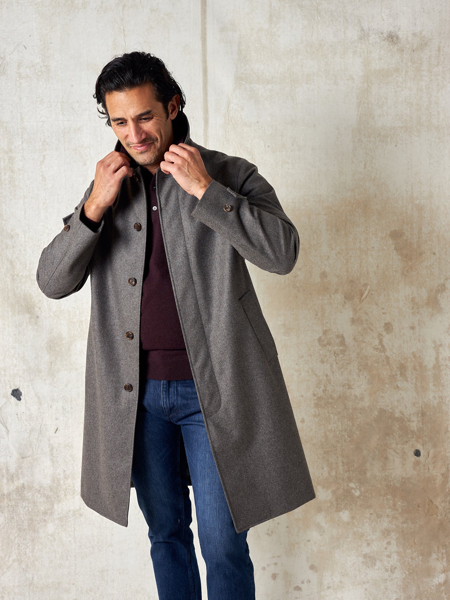 Our modern take on the car coat is crafted with no canvassing or shoulder padding at all. This makes it extremely versatile, perfect for a very lightweight layer to protect from the rain or opt for a much heavier fabric to achieve ultimate drape and protection against the cold. We carry 1000’s of the finest Italian and British outerwear fabrics in a number of weights and finishes.
