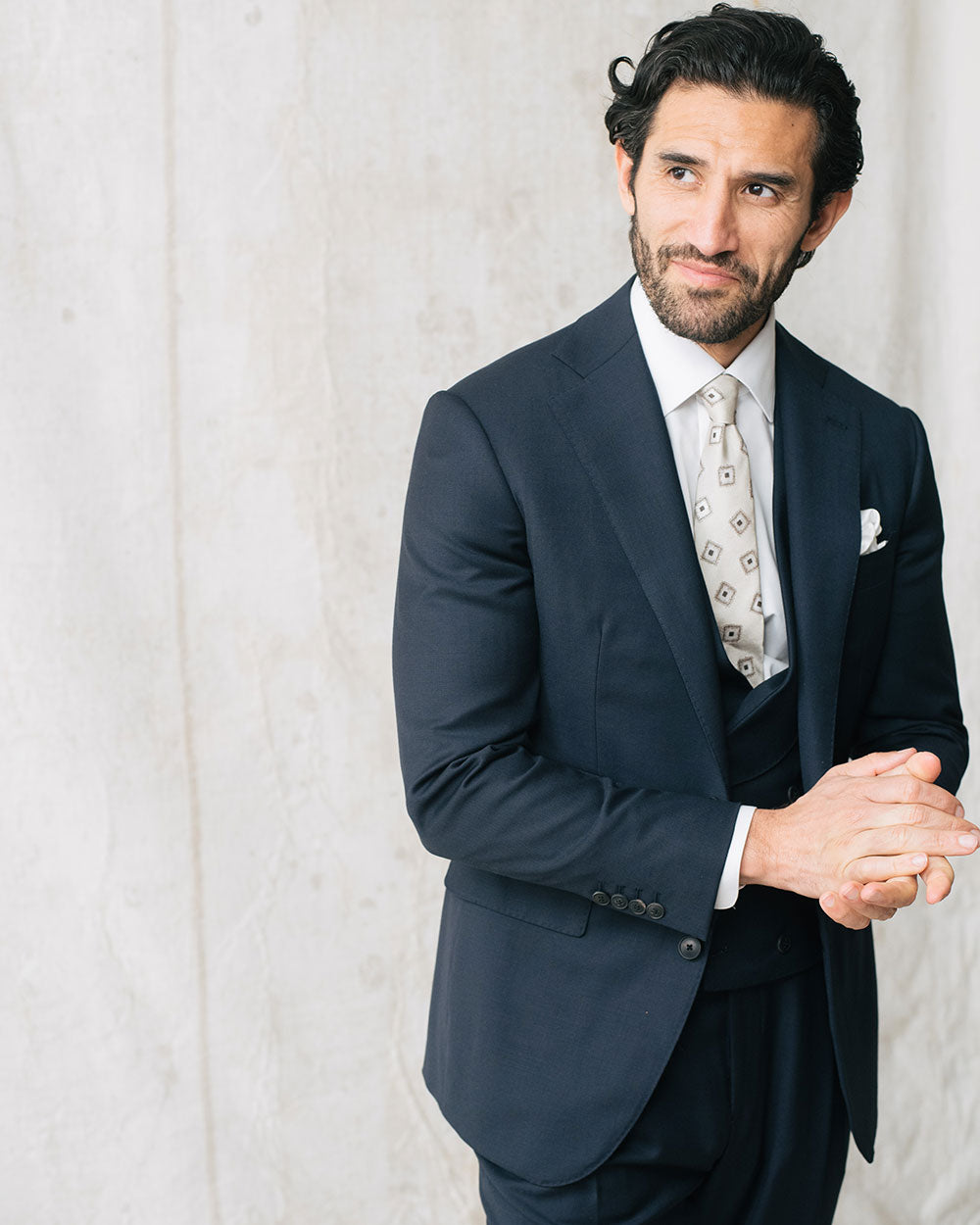 Each cloth will have it’s own unique price for the item commissioned, then all design options in regards to closure, pockets, lapel etc are all included in the price. Also included in our pricing is lining choice, button selection and monogram embroidery.