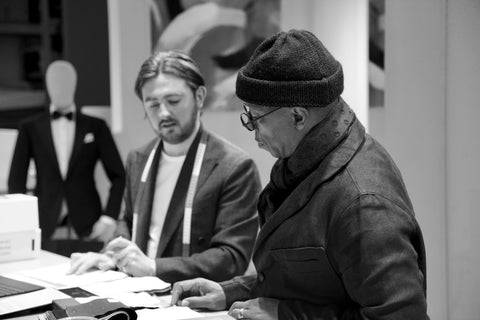 フィッティングは私たちにとっても同様に楽しかったです。彼は自分がどのような美学を好むかを正確に知っていましたが、私たちがフィット感についてのアイデアを実現できるように励ましてくれました。私たちにとって、これはまさにカスタム仕立てを依頼する際のアプローチ方法であり、イアンの信頼と信念に心から感謝しています。ご覧のとおり、その結果は、クラシックでエレガントな仕立てと、ライティの個人的なスタイルと色彩センスと組み合わせた現代的な雰囲気の完璧なバランスを備えた、素晴らしく素晴らしいカットの衣服です。