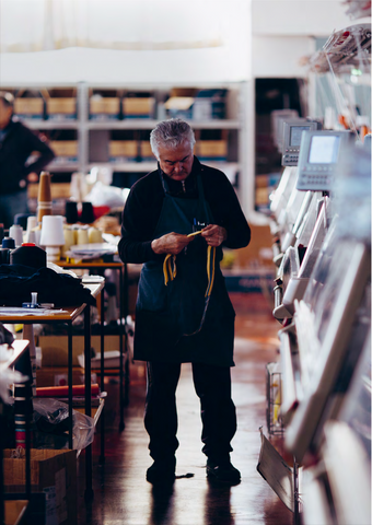 Our atelier is distinguished by its use of advanced 3D knitting machines. This technology eliminates seams, creating a more luxurious appearance and fit. Unlike traditional methods, which knit each section separately and sew them together, our specialised machines knit the yarn directly into the final customized form. Only the neckline and other details such as pockets require sewing after the main body is complete. This method results in minimal error and waste, shortens the supply chain, and reduces water and energy consumption.